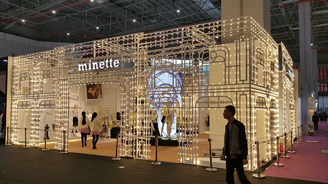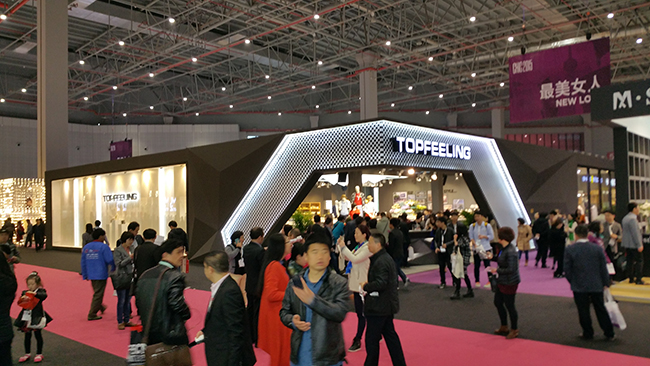 德展集團本此設計承建面積近1萬平方米,涵蓋各展館和品牌企業,其中承建5.1B103愛慕集團旗下的寶迪威德、5.2A213TOPFEELING750平方米)、6.1館的石獅展團(3000平方米)、6.2館的CHIC秀(2000平方米)及主辦方新增板塊“鏈接未來”備受矚目,德展集團項目團隊團結協作,不怕苦不怕累,精益求精的工作作風得到了參展商、主辦方的一致好評。